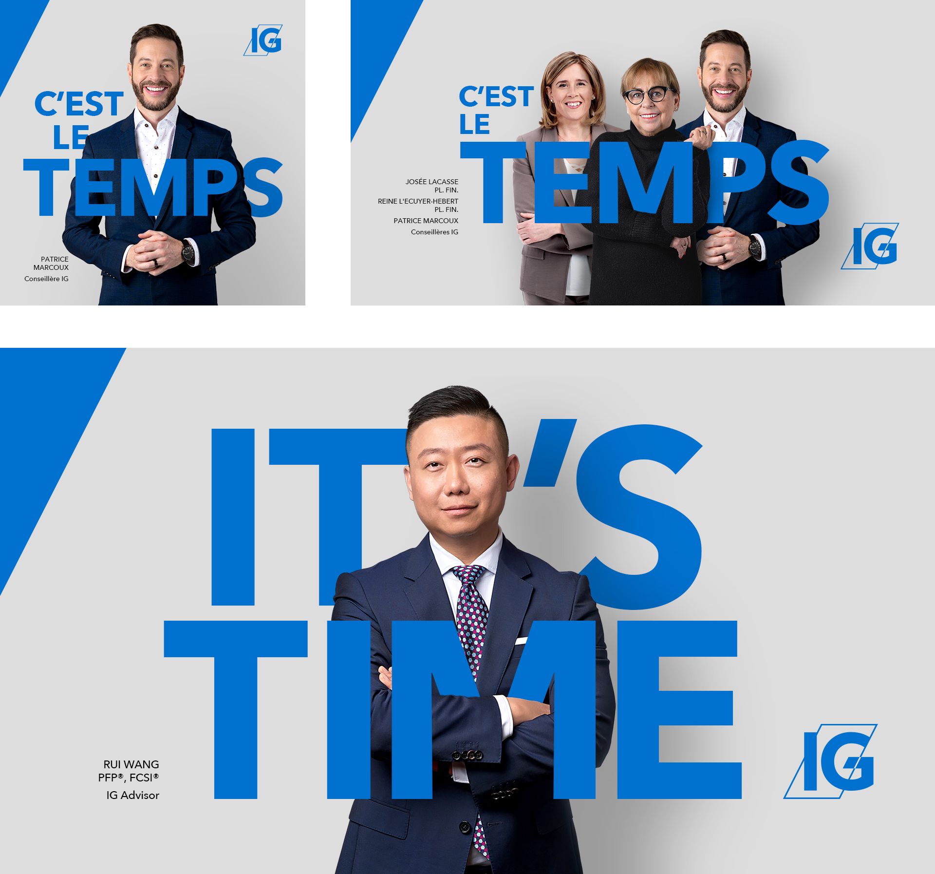 To promote a talent recruitment campaign, multiple (30+) static ad sizes of various featured talent/talent groupings were requested to be designed using an established design framework. Intended for use in video and deployed on various ad platforms and social networks. Iterated in both English and French.